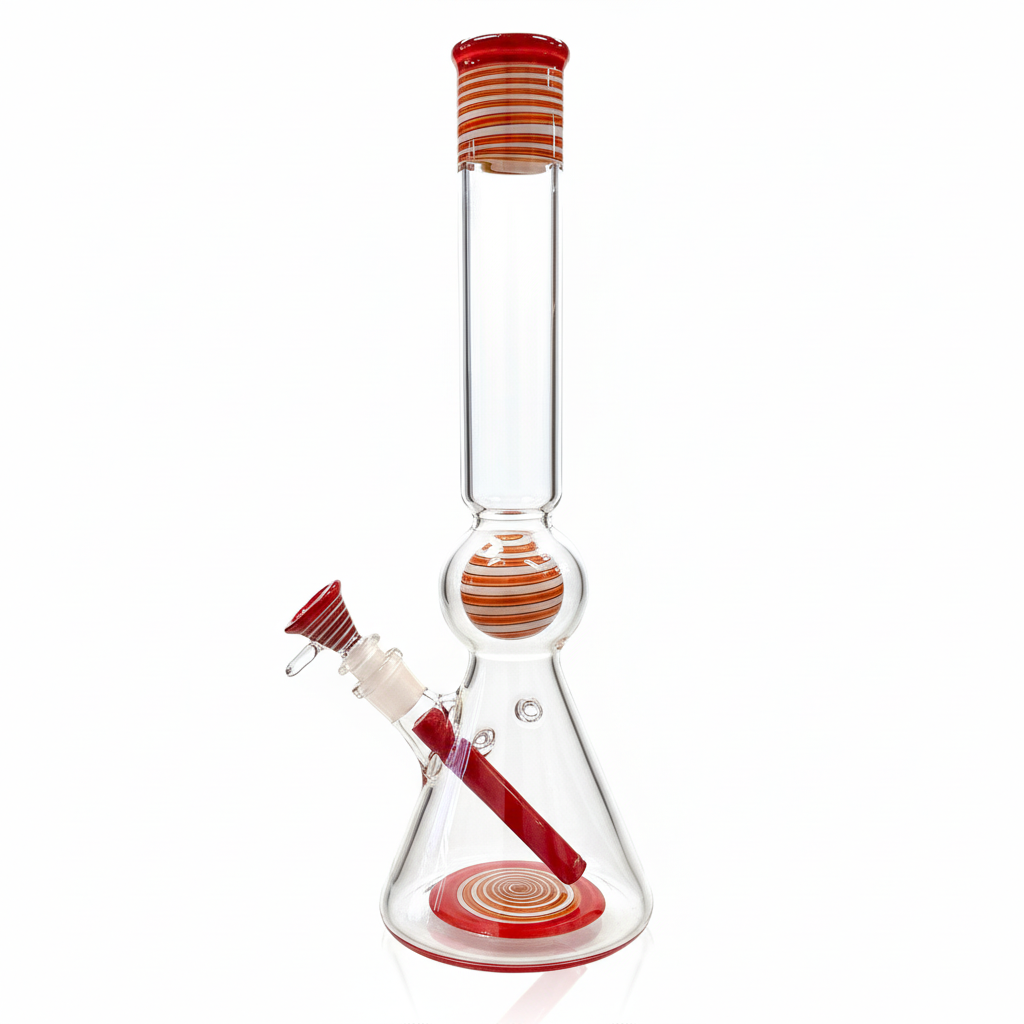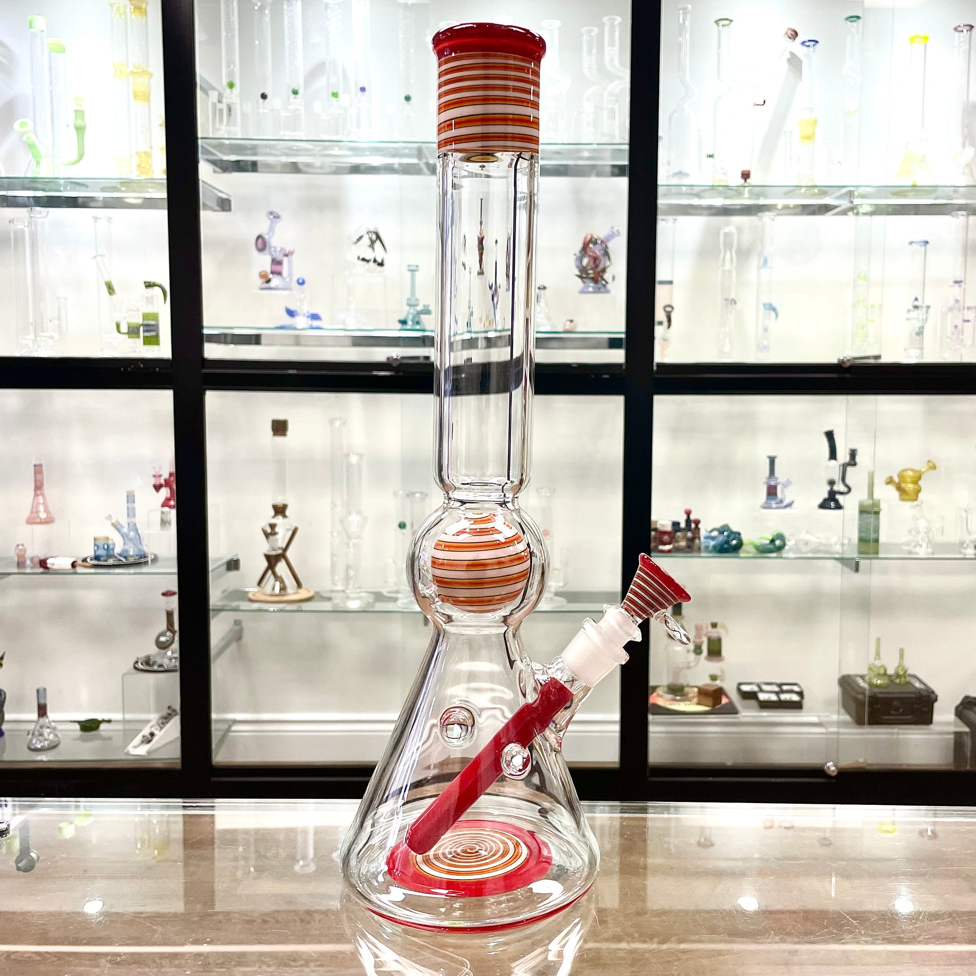 Full Zirkl Colour Accented Ball Beaker - Cherry & Line Work w/ Opals