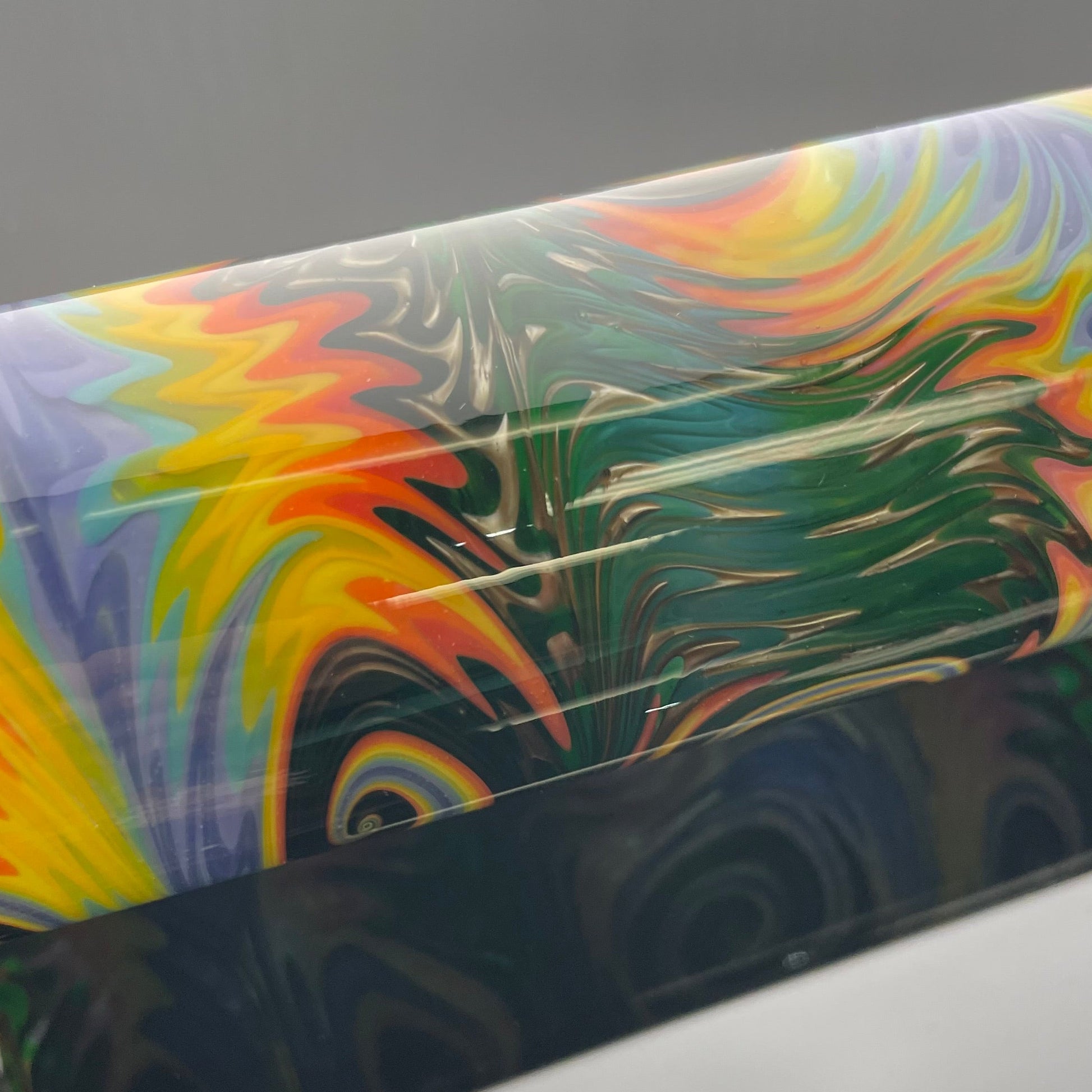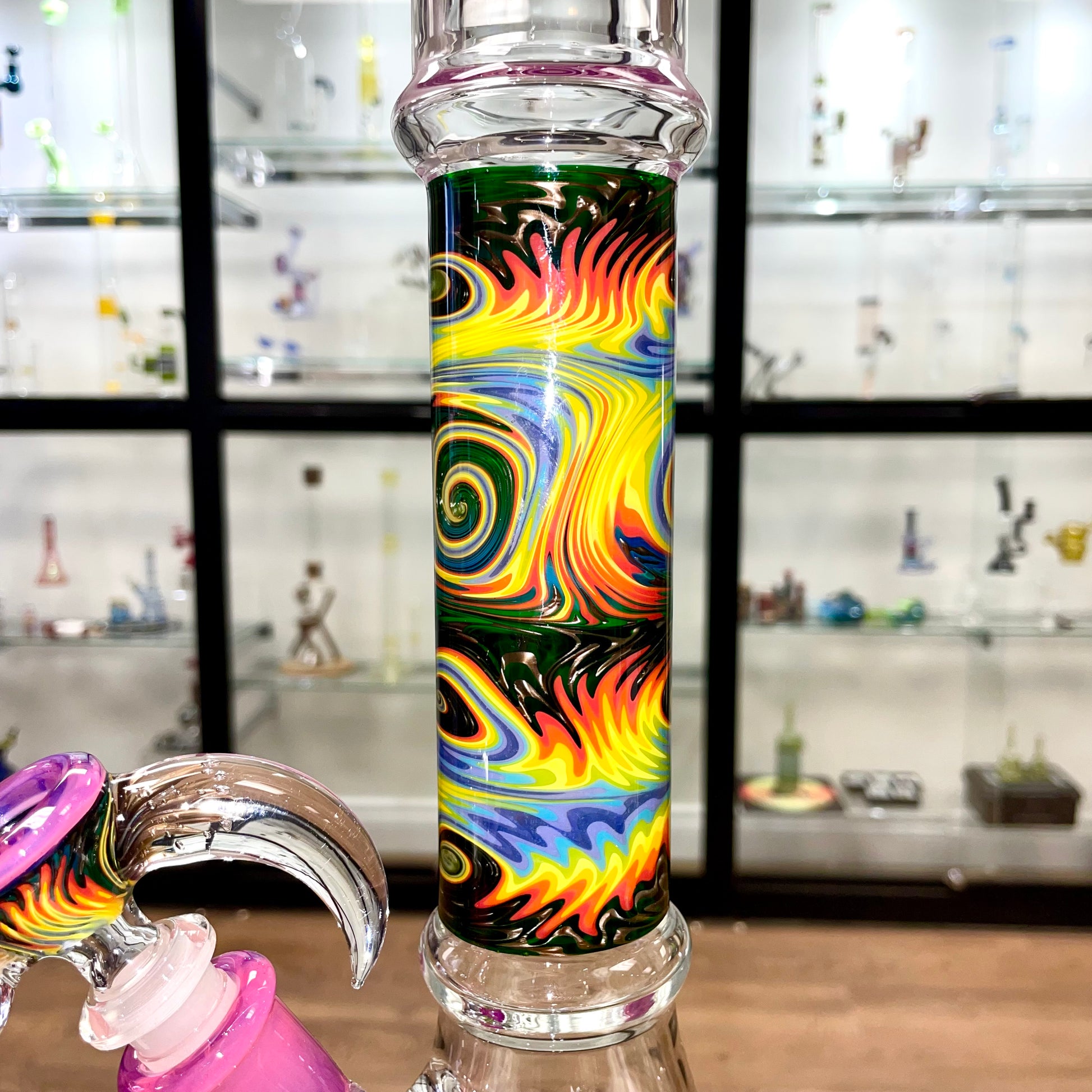 - Wig Wag Section Colours: Cherry, lava, canary, Rasta gold, timber, opaque aqua, skyline, purple urple, exp green #5, electrum, accents of karmaline, amber purple sea anemone marble.